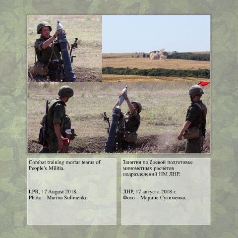Combat training mortar teams of Занятия по боевой подготовке People’s Militia. минометных расчётов подразделений НМ ЛНР. LPR, 17 August 2018. ЛНР, 17 августа 2018 г. Photo – Marina Sulimenko. Фото – Марина Сулименко.