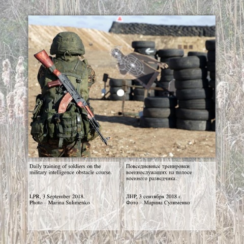 Daily training of soldiers on the Повседневные тренировки military intelligence obstacle course. военнослужащих на полосе военного разведчика. LPR, 3 September 2018. ЛНР, 3 сентября 2018 г. Photo – Marina Sulimenko Фото – Марина Сулименко